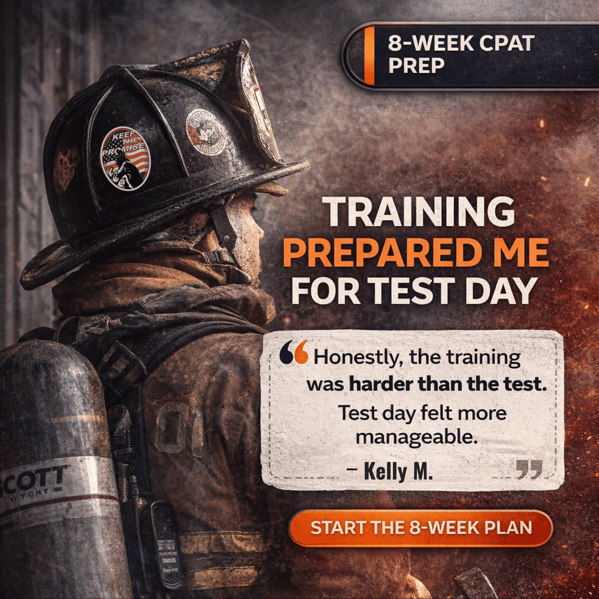 "I failed the CPAT once and was crushed. Ran this 8-week style of training and shaved over 90 seconds off my time."